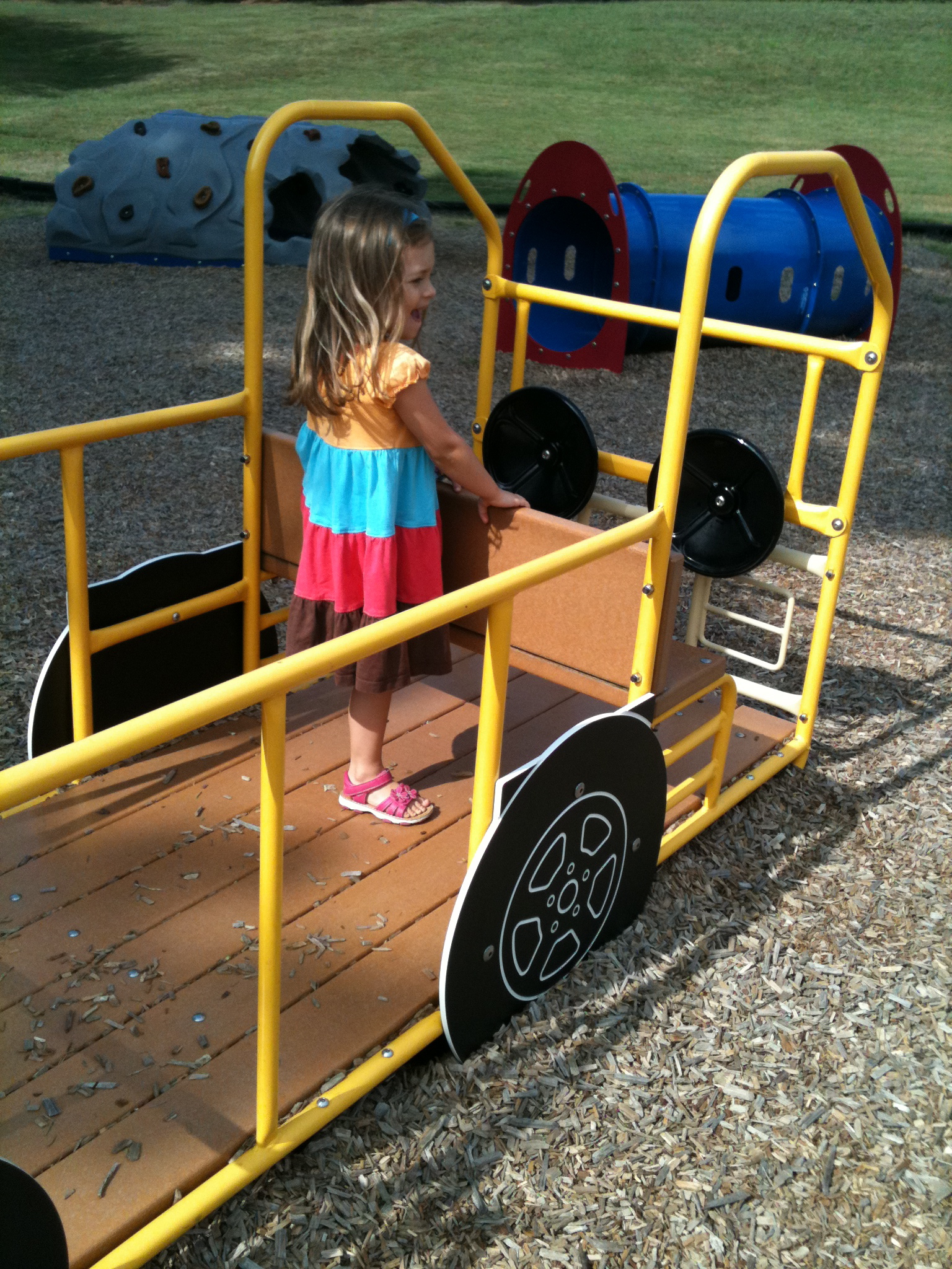 I wouldn’t be surprised if she had rainbow underwear. It’s actually grown to be her favorite color. And when I (or anyone else) tried to tell her that rainbow is not in fact a color, but multiple colors, she does not take it very well. “Rainbow is too a color, Sissy! Don’t you know anything? Hey, first one to touch Sandy wins!” This is Piper’s way of changing the subject. She sure is a colorful one.