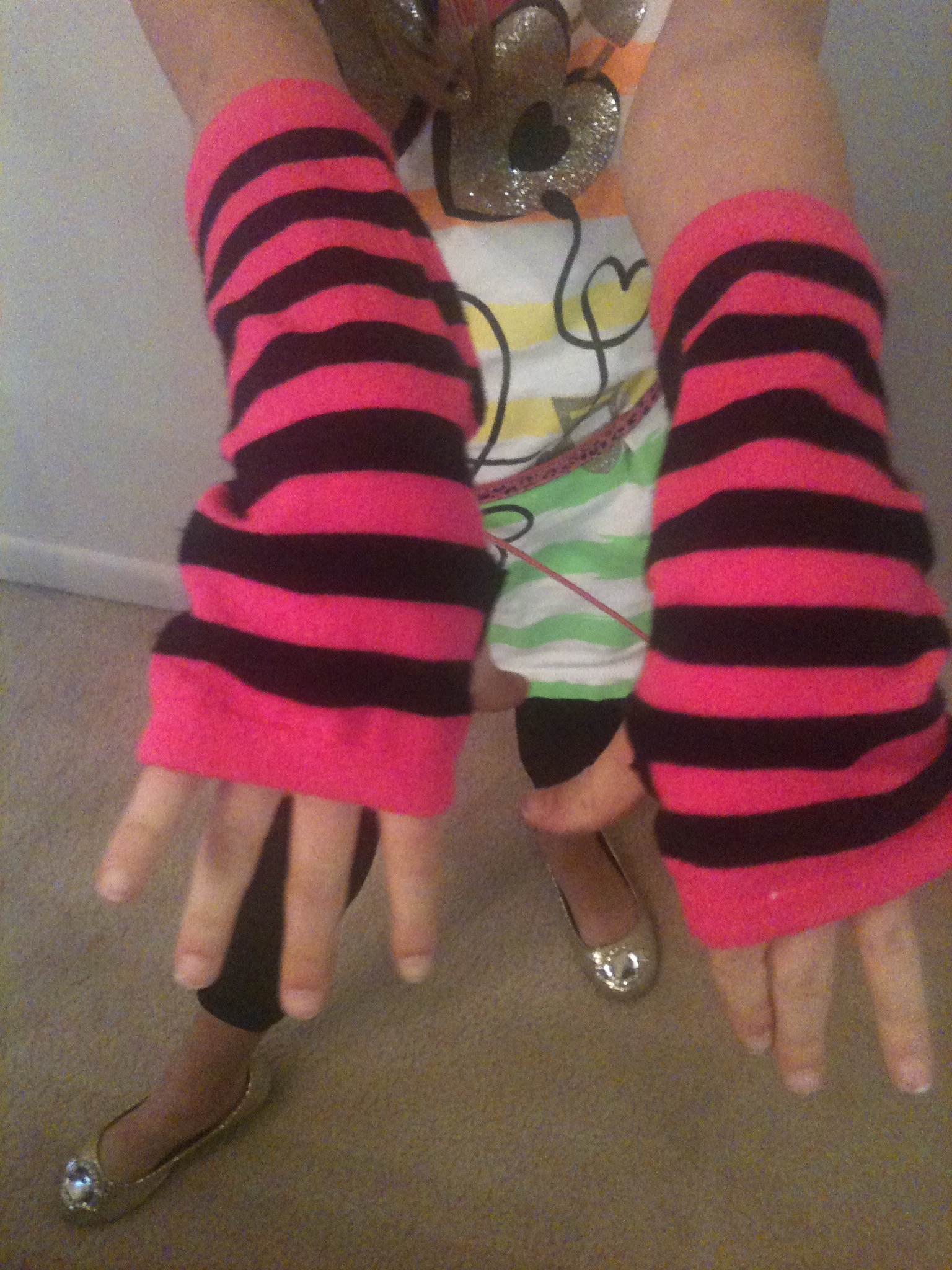 Sissy’s been wearing striped hot pink gloves, the central feature of the costume, around the house for weeks. She even lets Piper try them on. It’s intoxicating.