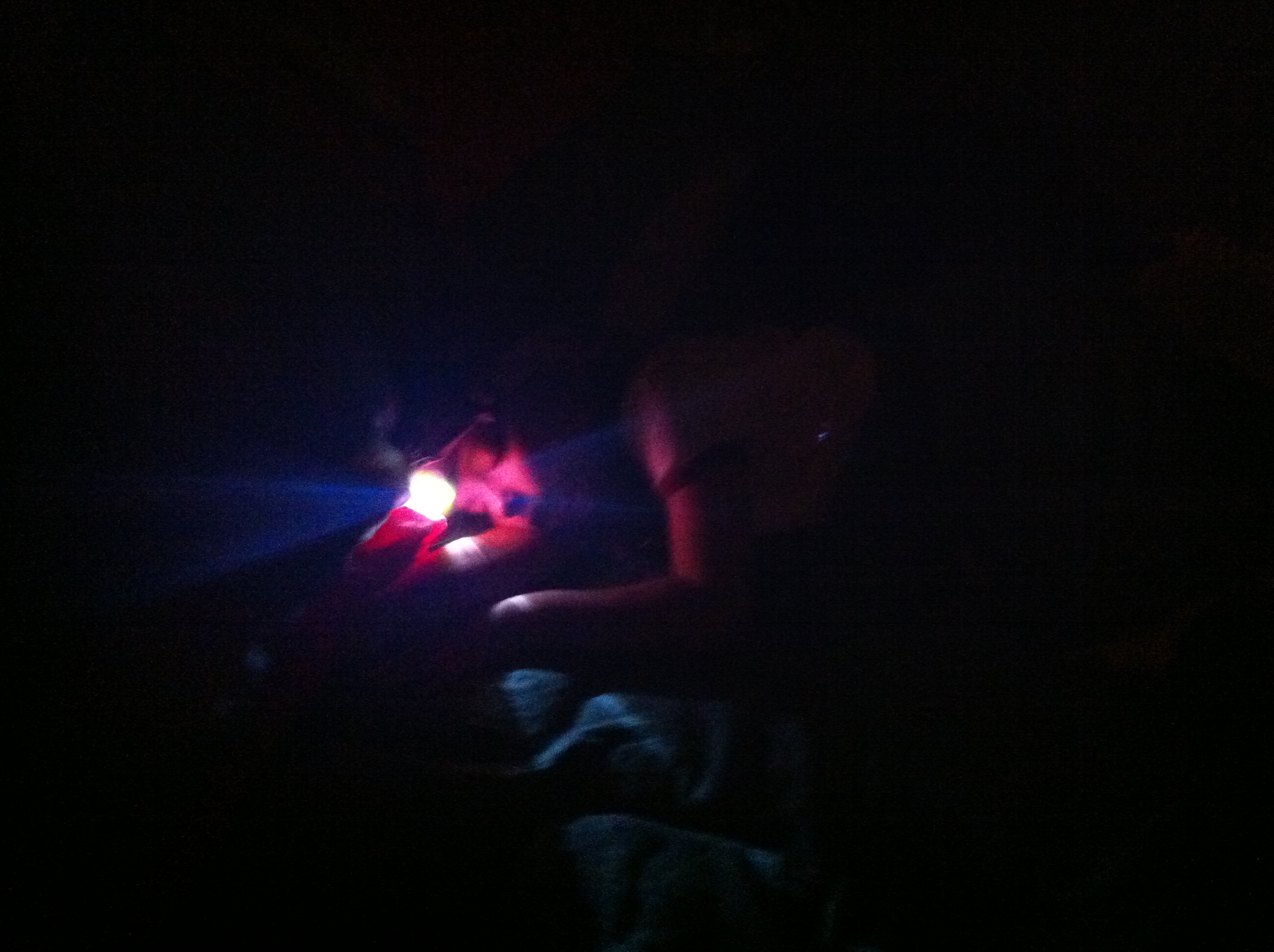 That’s Piper sound asleep with a Tinker Bell reading light.