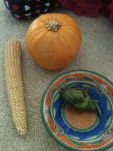 “Finally, this is an ear of corn. We’ll be making popcorn from this. You’ll be helping me, Mom. You’ll need to be patient. Popcorn popping takes time. Then we’ll eat it.”
