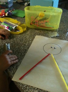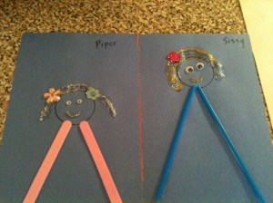 Piper came home from a birthday party with a craft kit. It was packed full of all the objects I forbid in this house: glitter, pom poms, multi-colored pipe cleaners, glitter glue, sparkly stick-ons, plastic straws, more glitter.