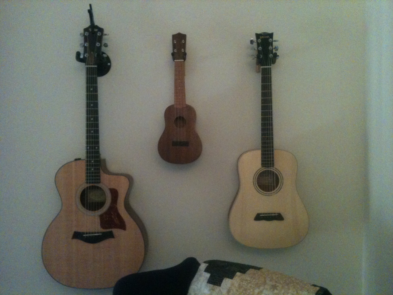 Sissy got her very own guitar for her birthday this year. Last night while Sissy and Piper were sleeping, we hung up the guitars. When Piper came down for breakfast she blinked hard at the wall. Then she announced, “Our guitars had a baby!”