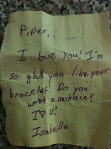 Piper doesn’t quite understand the break up. The absence stings. Last night as I was tucking her in, Piper asked me to climb up into the top bunk. She just wanted someone up there while she dozed off. I found myself in a world of pink flowered pillows and stuffed animals. It’s a little girl’s world. Sissy isn’t much of a little girl anymore. My heart cracked a little, too. Then Piper called through the dark, “Okay, Mom. You can go now. I’m fine. Sissy’s just next door. I know where to find her.”