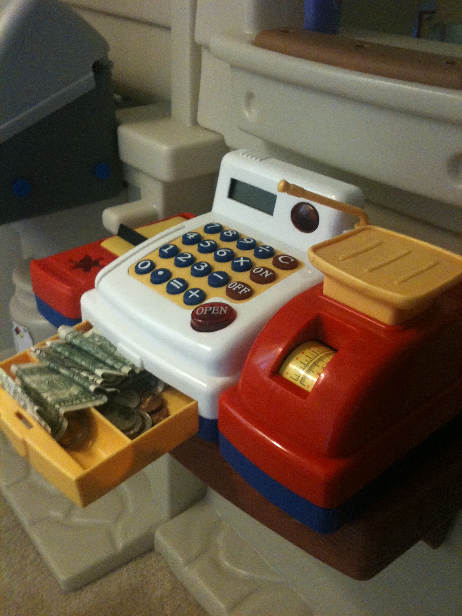 Yep. You’re right. Piper chose to grab her money from her cash register and dig through our neighbor’s castaways. First, she raided her allowance stash.